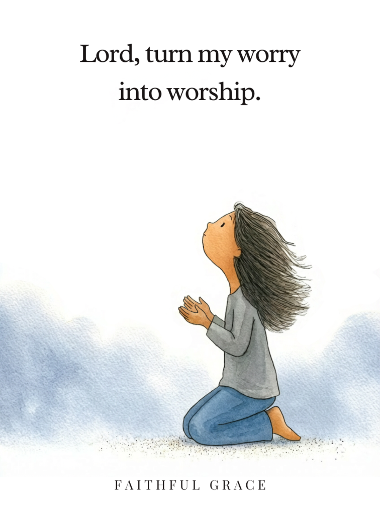 Turning worry into worship means when anxiety rises, I counter it with truth about You, replacing fearful thoughts with declarations of Your faithfulness, power, and love.
